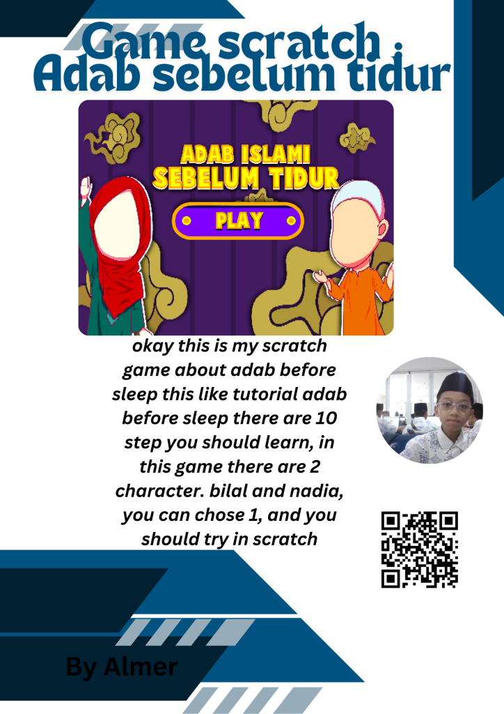 so this is a game adab game i make from scratch there are 2 character if you want play, there are nadia and bilal, there background not same so if you want bilal your background is bilal room and if you pick nadia, there are nadia room to, there are 10 step of adab before sleep