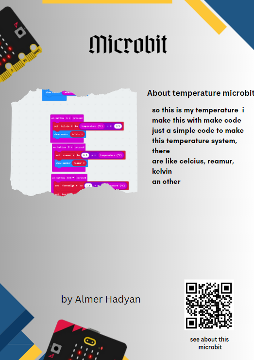 so this is my project about micro bit in here i make microbit about temperature, so there are like celcius, kelvin and other, and i make this in make code, in make code, we can make anything about microbit maybe thats all about microbit